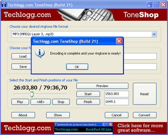 Het opslaan is dus de speerpunt van ToneShop. Hierbij heb je de keuze uit onder andere mp3, het Nokia True Tones-formaat en iPhone-formaat. De software presenteert dit alles in een ontzettend overzichtelijk menuutje, waarin alle opties voor zich spreken.